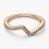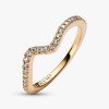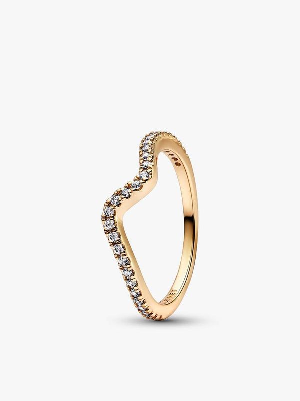 Hand-finished in 14k gold plating, our Sparkling Wave Ring curves to resemble the movement of a wave and features a row of round brilliant-cut clear cubic zirconia along its front. Wear it solo or stacked for a contempor
