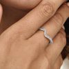 Hand-finished in sterling silver, our Sparkling Wave Ring curves to resemble the movement of a wave and features a row of round brilliant-cut clear cubic zirconia along its front. Wear it solo or stacked for a contempora