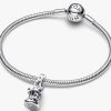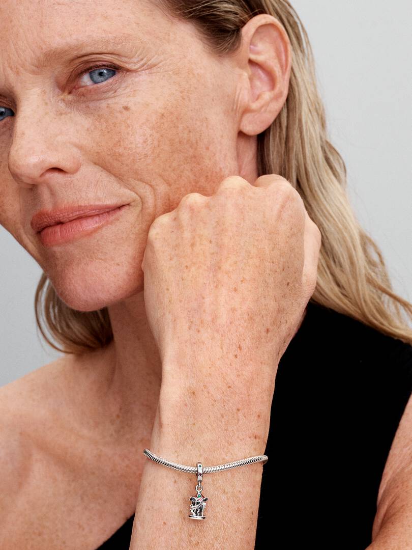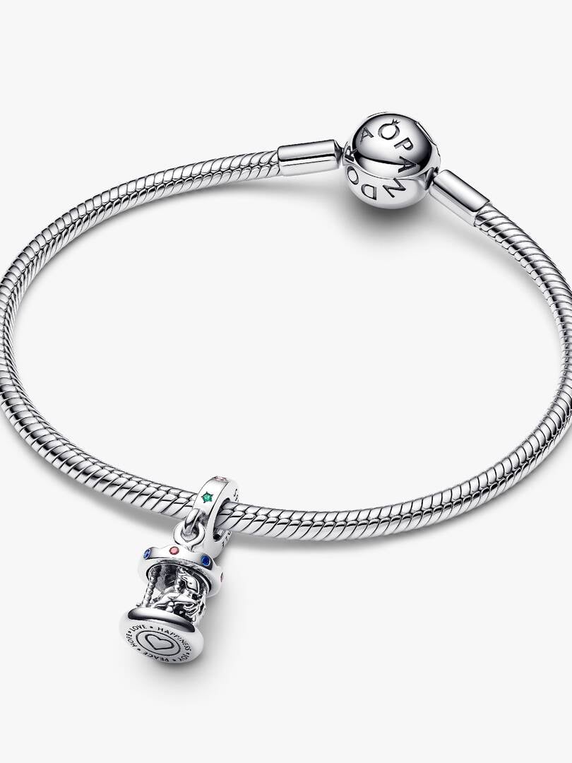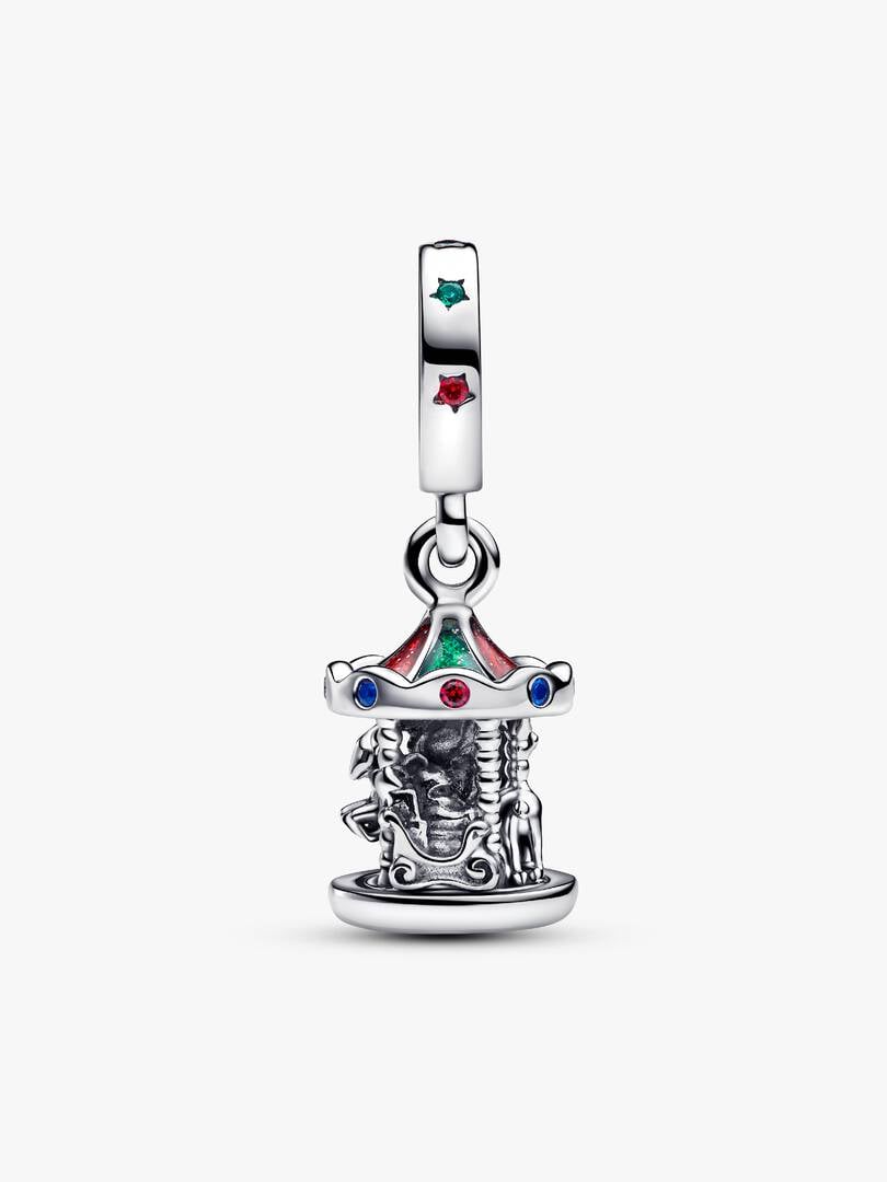 Celebrate the festive season with our Spinning Carousel Dangle Charm. Crafted in sterling silver with glittery enamel, sparkling stones and man-made crystals, this moveable carousel features Santa and his reindeer spinni
