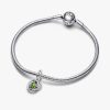 tral spring green man-made crystal, elegantly surrounded by three clear cubic zirconia. The detailed design symbolizes eternity and adds an additional layer of meaning to the piece. Elevate your bracelet with this essential piece or gift it as a representation of an everlasting bond.