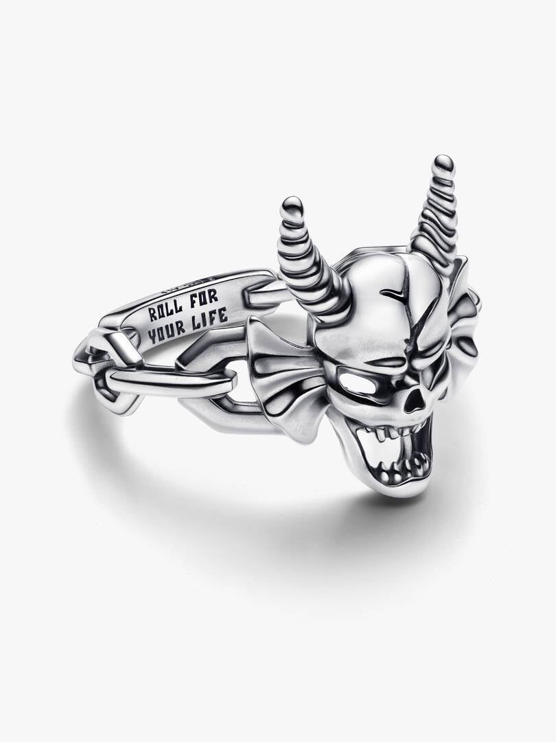 friendship and loyalty. The inside of the band features an engraving that reads “ROLL FOR YOUR LIFE” and the outside part is highlighted with bold, decorative links connected with a bar. Style with your other meaningful favourites or gift to the Stranger Things fan in your life.