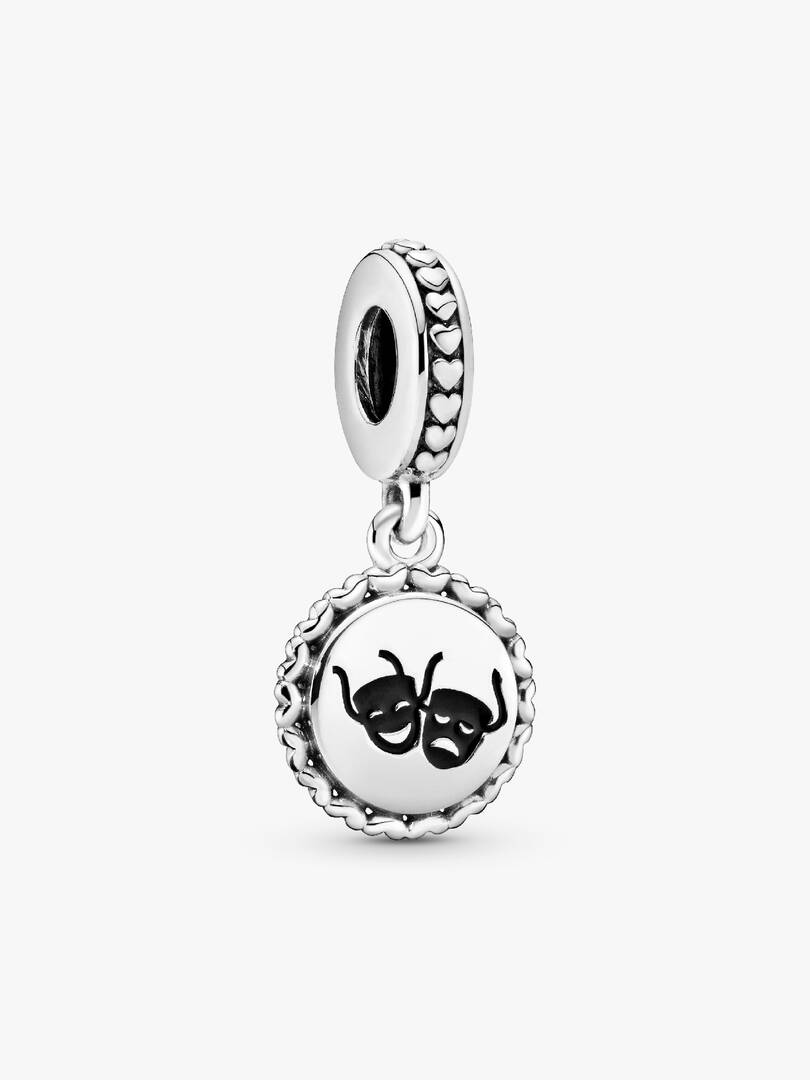 tre. Inspired by the comedy and tragedy masks worn in ancient Greek theatre, they’re a universal symbol for theatrical performances. This round dangling disc charm, with a row of delicate 3D hearts on the border, adds dramatic flair to any look.