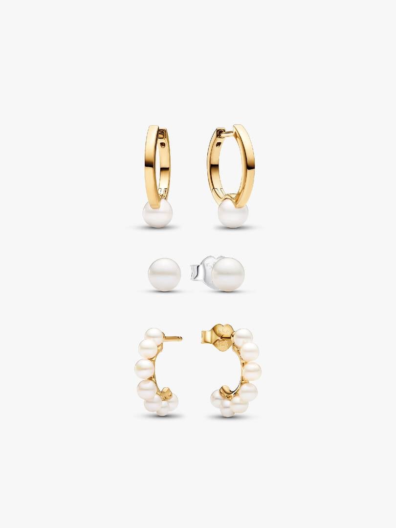 Treated Freshwater Cultured Pearl Earring Set | Gold plated
