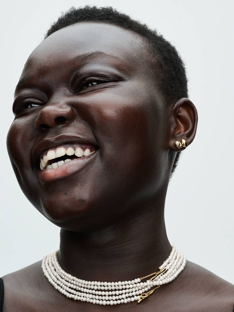 Introducing a new kind of classic with the Treated Freshwater Cultured Pearls T-bar Collier Necklace. This necklace features a row of tiny, elongated treated freshwater cultured pearls that close with an organically-shap
