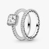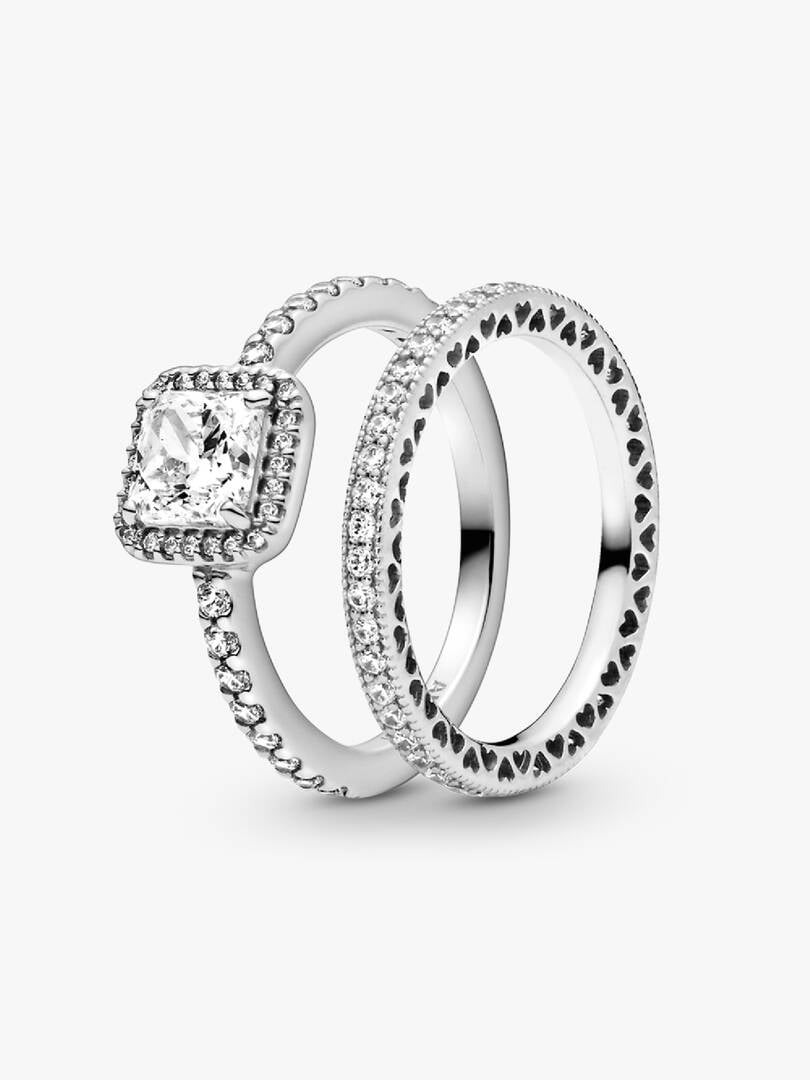 Timeless glamour meets dazzling elegance in this vintage-inspired ring set. Stun with sophistication with the Square Sparkle Halo Ring featuring a large brilliant-cut cubic zirconia surrounded by tiny shimmering stones.
