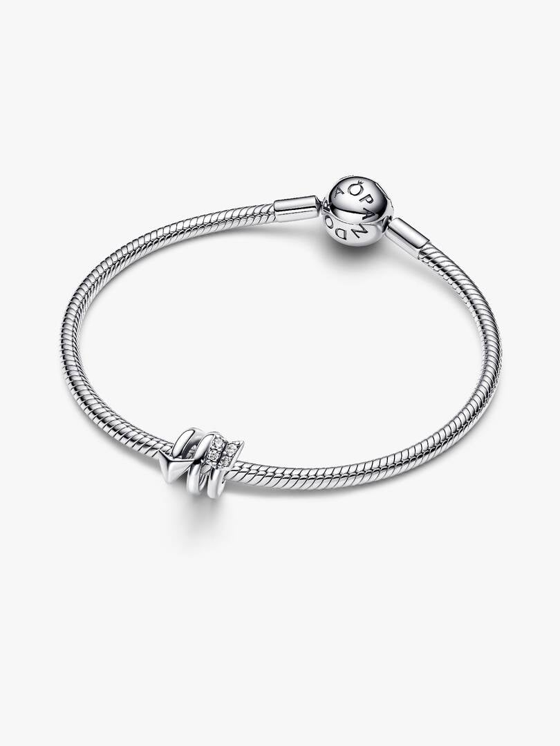 Feel hit by Cupid’s arrow with this romantic charm. Crafted from sterling silver, this meaningful piece features four bead-set cubic zirconia along the bow, adding a touch of sparkle. With its pointed tip and twisting de