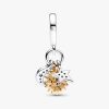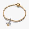Bring a sprinkling of celestial magic to your jewelry styling with the Two-tone Celestial Triple Dangle Charm. This charm combines three celestial icons: a sun motif in 14k gold plating with sparkling stones and microbea