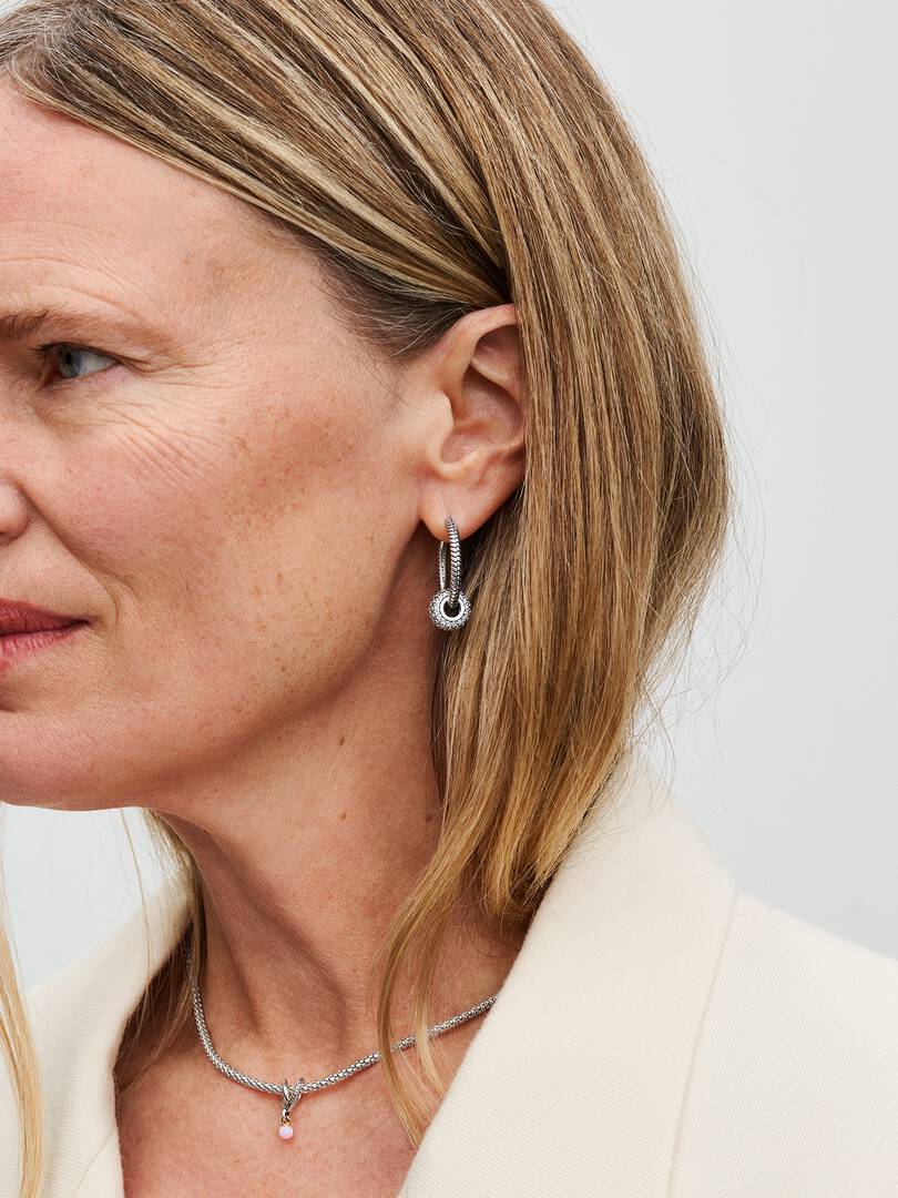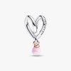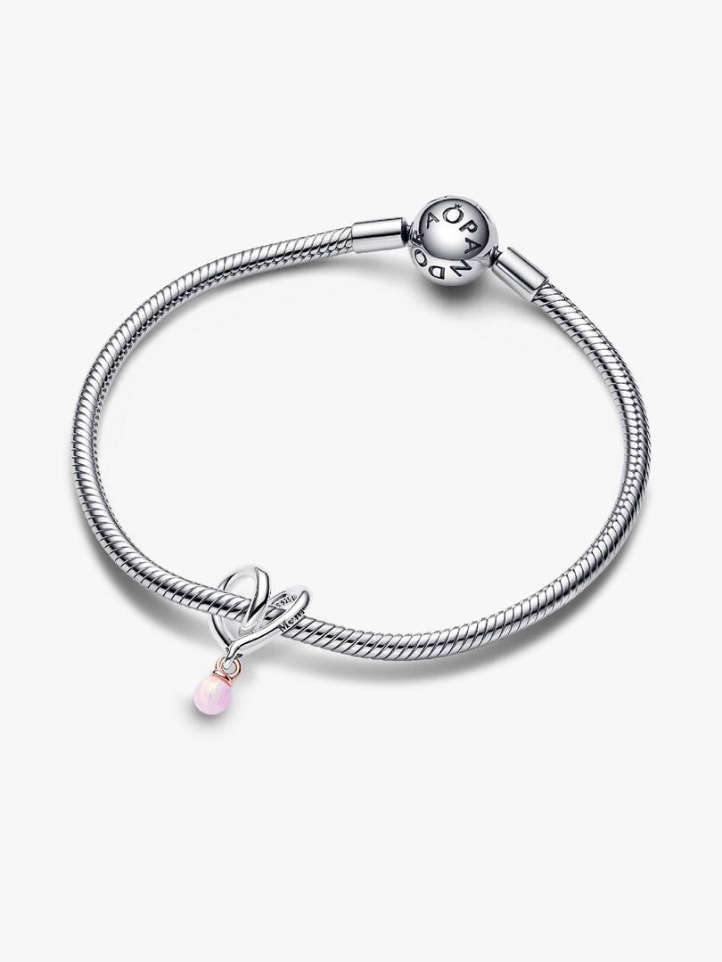 ating motif—a heart formed by looping sterling silver lines. Two engravings, “There is no one like you” and “Mom,” add a loving touch, where the ‘o’ in mom is shaped as a heart. A dangling 14k rose gold-plated pin showcases a round pink lab-created opal, representing the beauty of motherhood. Embrace the completeness of maternal love with this exquisite brand heart charm.