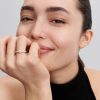 Wear a universal symbol of love and connection. This 14k gold-plated solitaire ring features a sparkling heart-shaped stone wrapped in shimmering enamel.