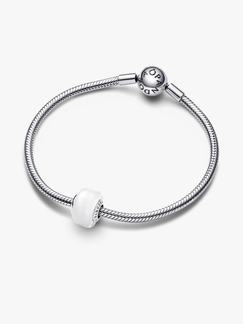 Add impact your charm styling with our White Mini Murano Glass Charm. This new charm design has a smaller size than our other Murano charms and a slightly squared shape, creating new ways to play with color and dimension